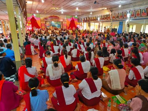 မွန်ပြည်နယ်၊ သထုံမြို့၊ ပရိယတ္တိသာသနဟိတအသင်းကြီး၏ (၉၈)ကြိမ်မြောက် မဟာဓမ္မပူဇာ ဘွဲ့နှင်းသဘင်အခမ်းအနားကို ယနေ့နံနက်က မြသပိတ်တောင်ခြေ၊ သဒ္ဓမ္မဇောတိကာရာမ ကျောင်းတိုက်အတွင်းရှိ ဘွဲ့နှင်းဓမ္မာရုံ၌ ကျင်းပပြုလုပ်သည်။