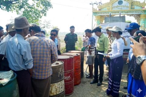 နေပြည်တော်ကောင်စီဝင်များ ဖြစ်ကြသည့် ဗိုလ်မှူးကြီး ရဲမိုးနှင့် ဦးအောင်ဇေယျ နေပြည်တော်အတွင်း နွေစပါးထွန်ယက်နိုင်ရေး စက်သုံးဆီရောင်းချနေမှုအား ကြည့်ရှုအားပေး
