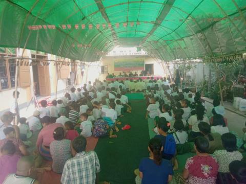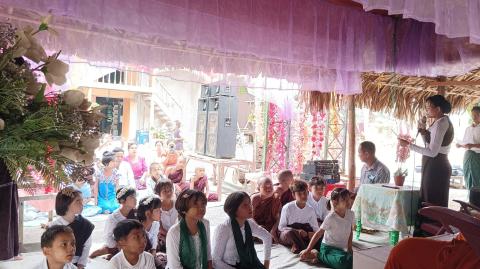 မအူပင်မြို့နယ်၊ အိုင်းဝိုင်းကျေးရွာရှိ စိန်ရွှေရတနာ ဘုန်းတော်ကြီးကျောင်း၌ မီးဘေးလုံခြုံရေး အသိပညာပေး ကွင်းဆင်းဟောပြော