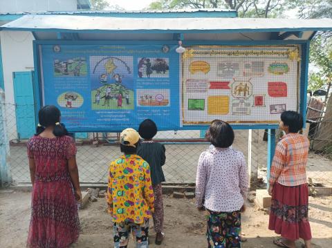 ဆင်ပေါင်ဝဲမြို့နယ်၌ ကလေးအလုပ်သမားပပျောက်ရေးဆိုင်ရာ အသိပညာပေး ဗီနိုင်းပိုစတာများ မြေစိုက်နံရံကပ်ဘုတ်တွင်ပြသ