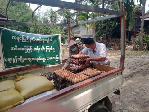 ကရင်ပြည်နယ်၊ ဘားအံမြို့နယ်တွင် ဒေသခံပြည်သူများ၊ ကျေးလက်နေပြည်သူများ ဌာနဆိုင်ရာ ဝန်ထမ်းများနှင့် မိသားစုဝင်များ စားဝတ်နေရေး တစ်ဖက်တစ်လမ်းမှ အဆင်ပြေစေရေး အတွက် အခြေခံစားသောက်ကုန်များအား သက်သာသောဈေးနှုန်းဖြင့် နေ့စဉ်ရောင်းချပေးလျက်ရှိရာ ယနေ့ မွန်းလွဲပိုင်းက ဘားအံမြို့ တရုတ်လှစံပြကျေးရွာ၌ အခြေခံစားသောက်ကုန်များ ဖြစ်သည့် ဆန်၊ ဆီ၊ ကြက်ဥများအား ရောင်းချပေးခဲ့ကြောင်း သိရသည်။