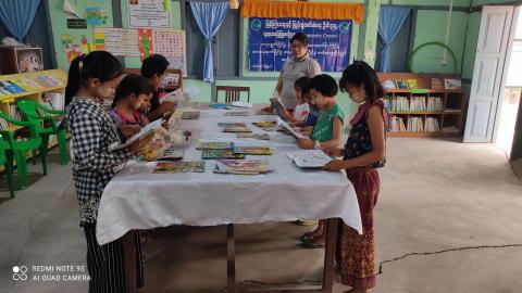 ပန်းတောင်းမြို့ လူထုအခြေပြုဗဟိုဌာန၌ ကလေးများအကြိုက် စာအုပ်/ စာစောင်များ၊ ဓာတ်ပုံနှင့် နံရံကပ်စာစောင်များပြသ