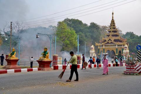 မကွေးတိုင်းဒေသကြီးအတွင်းရှိ ခရိုင်/မြို့နယ်အသီးသီးတွင် မြို့/ရွာသန့်ရှင်းသာယာလှပရေးအတွက် အပတ်စဉ်(စနေနေ့တိုင်း)စုပေါင်းသန့်ရှင်းရေးလုပ်ငန်းများ ဆောင်ရွက်လျက်ရှိရာ ယမန်နေ့နံနက် ၇ နာရီအချိန်က တိုင်းဒေသကြီး/ခရိုင်/မြို့နယ်ဌာနဆိုင်ရာများစုပေါင်း၍ မကွေးမြို့မြသလွန်ဘုရားကုန်းတော်၌ စုပေါင်းသန့်ရှင်းရေး ပြုလုပ်ဆောင်ရွက်နေမှုအား တိုင်းဒေသကြီးဝန်ကြီးချုပ်ဦးတင့်လွင်နှင့် တိုင်းဒေသကြီးအစိုးရအဖွဲ့ဝင်ဝန်ကြီးများ၊ ဌာနဆိုင်ရာ တာဝန်ရှိသူများ ကြည့်ရှုအားပေးသည်။