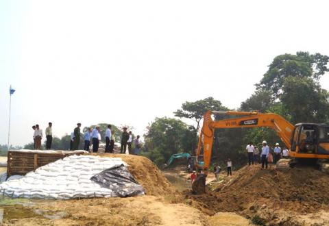 နေပြည်တော်ကောင်စီအဖွဲ့ဝင် ဗိုလ်မှူးကြီးမင်းနောင် လယ်ဝေးမြို့နယ် ရုံးပင်ချောင်း ယာယီရေထိန်းဆည် (အေလာ) တည်ဆောက်နေမှုများအား ကြည့်ရှုစစ်ဆေး