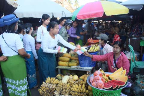 ဧရာဝတီတိုင်းဒေသကြီး၊ မအူပင်ခရိုင်၊ ဓနုဖြူမြို့နယ်၌ "ဒို့အတူတူမဲပေးကြမယ်" ရွေးကောက်ပွဲဆိုင်ရာ အသိပညာပေး လက်ကမ်းစာစောင်များကို ယနေ့နံနက်ပိုင်းက မြို့မစျေးနှင့် မြို့နယ်အတွင်း လူစည်ကားရာနေရာများတွင် အသိပညာပေးဖြန့်ဝေခဲ့သည်။