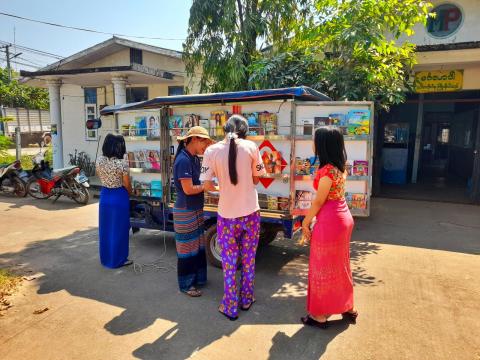 ဝေါမြို့တွင် စာဖတ်ရှိန်မြှင့်တင်ရေး ရွေ့လျားစာကြည့်တိုက် Mobile Library ဖြင့် စာအုပ်၊ စာစောင်များ အခမဲ့ ငှားရမ်းပေး