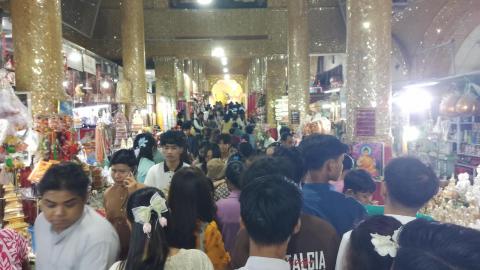 ကန်ကြီးထောင့်မြို့နယ်တွင် သီတင်းကျွတ်လပြည့်နေ့ည၌ ဘုရားဖူးလာပြည်သူများဖြင့်စည်ကား