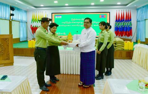 ကချင်ပြည်နယ်အစိုးရအဖွဲ့ရုံးဝင်းအတွင်း တာဝန်ထမ်းဆောင်လျက်ရှိသော ပြည်နယ်အထွေထွေအုပ်ချုပ်ရေးဦးစီးဌာနမှ အရာထမ်း/အမှုထမ်းဝန်ထမ်းများနှင့် တွဲဘက်တာဝန်ထမ်းဆောင်လျက် ရှိသော ဝန်ထမ်းများအား အခြေခံစားသောက်ကုန်များ ထောက်ပံ့ပေးအပ်ပွဲကို ဇန်နဝါရီလ ၂၆ ရက်နေ့နံနက် ၈ နာရီက ပြည်နယ်အစိုးရအဖွဲ့ရုံးဝင်းအတွင်းရှိ ဆမားဒူဝါဆင်ဝါးနော်ခန်းမ၌ ကျင်းပပြုလုပ်ရာ ပြည်နယ်ဝန်ကြီးချုပ် ဦးခက်ထိန်နန်နှင့် တာဝန်ရှိသူများ တက်ရောက်ခဲ့ကြသည်။