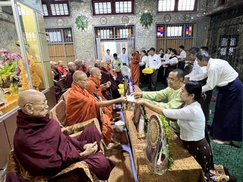ဝါးခယ်မမြို့ သကျမဟာသီရိဘုရားကြီးဝန်းအတွင်းရှိ သံဃာတော်များနှင့် သီလရှင်များအား အရုဏ်ဆွမ်းဆပ်ကပ်လှူဒါန်း