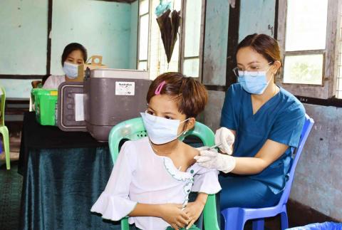 ရခိုင်ပြည်နယ်၊ ကျောက်ဖြူမြို့ပေါ်ရပ်ကွက်များရှိ အခြေခံပညာကျောင်းများဖြစ်သည့် အမှတ်(၂) အခြေခံပညာအထက်တန်းကျောင်း၊ အထက(ခွဲ)အလက-၂ မြို့မကျောင်းနှင့် အလယ်တန်း လေ့ကျင့်ရေးကျောင်း စသည့်ကျောင်းများမှ အသက် (၅) နှစ်မှ (၁၂)နှစ်အတွင်းရှိ ကျောင်းသား၊ ကျောင်းသူများကို ယနေ့မွန်းလွဲပိုင်းက အဆိုပါကျောင်းများတွင် ကိုဗစ်-၁၉ ရောဂါ ကာကွယ်ဆေးအား ဒုတိယအကြိမ်မြောက် ထိုးနှံပေးလျက်ရှိသည်။