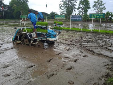 နတ်တလင်းမြို့တွင် ကောက်စိုက်စက်ဖြင့် မိုးစပါးစိုက်ပျိုးခြင်း သရုပ်ပြပွဲပြုလုပ်