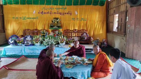 အထက(ခွဲ) မောတောင်ကျောင်း၌ သံဃာတော်မြတ်များအား ဝါဆိုသင်္ဃန်းနှင့် နေ့ဆွမ်းဆက်ကပ် လှူဒါန်း