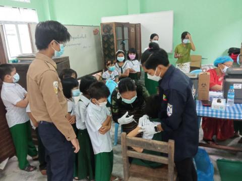 လှိုင်မြို့နယ်တွင် အသက် ၅ နှစ်မှ ၁၂ နှစ်အတွင်း ကျောင်းသား/သူများအား ကိုဗစ်-၁၉ ကာကွယ်ဆေးထိုးနှံ