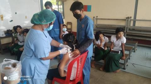 ဆိပ်ကြီးခနောင်တိုမြို့နယ်၌ ကျောင်းသား၊ ကျောင်းသူများအား ကိုဗစ်-၁၉ ကာကွယ်ဆေး ဒုတိယအကြိမ် ဆက်လက်ထိုးနှံ
