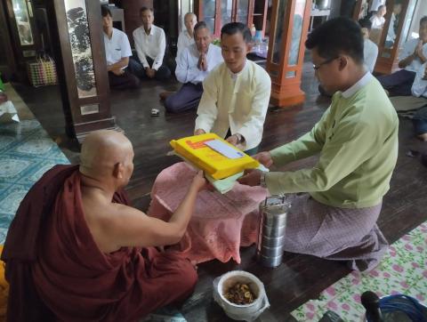 ရေဦးတွင် ဌာနဆိုင်ရာများစု ပေါင်း၍ဝါဆိုသင်္ကန်းနှင့် ၀တ္ထုငွေများ ဆက်ကပ်လှုဒါန်း