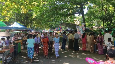သထုံမြို့ရှိ သမိုင်းဝင်ရွှေစာရံစေတီတော်မြတ်ကြီးတွင် သီတင်းကျွတ်လပြည့်နေ့၌ ဘုရားဖူးပြည်သူများဖြင့် စည်ကား