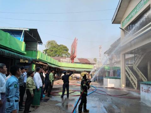ဘားအံမြို့ မြို့မဈေးကြီး၌ မီးဘေးအန္တရာယ်ကာကွယ်ရေး ဇာတ်တိုက်လေ့ကျင့်