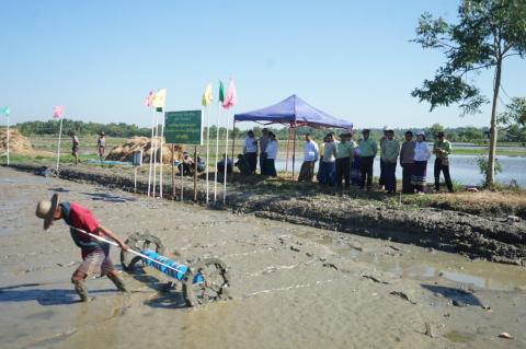 ဘိုကလေးမြို့နယ်တွင် နွေစပါးစိုက်ပျိုးရာသီ မျိုးစေ့ချကိရိယာ (Drum Seeder) ဖြင့် စိုက်ပျိုးပြသခြင်း ကွင်းသရုပ်ပြပွဲကျင်းပ