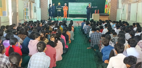 သဲကုန်းမြို့နယ်တွင် ကျောင်းအခြေပြု မီးဘေးအန္တရာယ်ကြိုတင်ကာကွယ်ရေး အသိပညာပေးဟောပြောပွဲနှင့် လက်တွေ့မီးငြှိမ်းသတ်ရေး သရုပ်ပြပွဲကျင်းပ