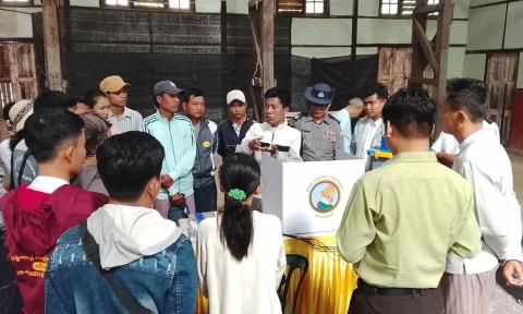 မိုင်းဆတ်မြို့၌ မဲပေးစက်ကိုင်တွယ်အသုံးပြုခြင်းနှင့် မဲရုံခင်းကျင်းခြင်း သရုပ်ပြပွဲကျင်းပ
