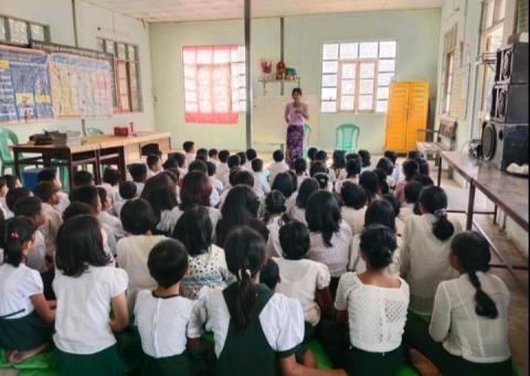 သံတောင်ကြီးမြို့ အခြေခံပညာအထက်တန်းကျောင်းတွင် နယ်လှည့်စာကြည့်တိုက် ကွင်းဆင်းဆောင်ရွက်