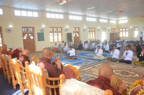 (၇၃) နှစ်မြောက် ကယားပြည်နယ်နေ့ကို ကြိုဆိုဂုဏ်ပြုသောအားဖြင့် လွိုင်ကော်မြို့၊ မြို့လယ်ဓမ္မာရုံဘက်စုံပြန်လည်ပြုပြင်ပြီးစီးခြင်း ရေစက်ချအလှူတော်မင်္ဂလာအခမ်းအနားကို ယမန်နေ့ နံနက်က အဆိုပါဓမ္မာရုံ၌ ကျင်းပရာ ဆရာတော်၊ သံဃာတော်အရှင်သူမြတ်များ၊ ပြည်နယ်ဝန်ကြီးချုပ် ဦးဇော်မျိုးတင်၊ ပြည်နယ် တရားသူကြီးချုပ်၊ ပြည်နယ်အစိုးရအဖွဲ့ဝင်များ၊ ဌာနဆိုင်ရာများ၊ မြို့မိ၊ မြို့ဖများနှင့် ဖိတ်ကြားထားသည့် ဧည့်သည်တော်များ တက်ရောက်ခဲ့ကြသည်။