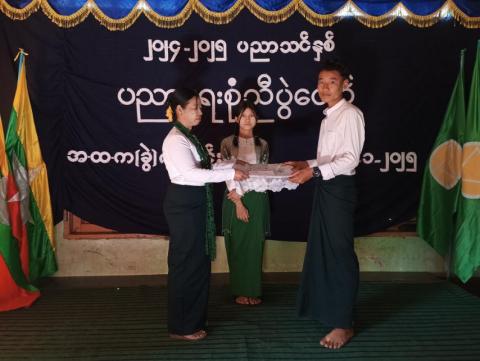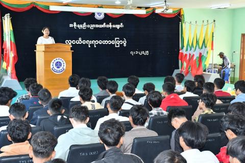 အစိုးရနည်းပညာအထက်တန်းကျောင်း (ကျောက်ဆည်)တွင် လူငယ်ရေးရာအသိပညာပေးဟောပြောပွဲ၊ စာအုပ်ပြပွဲ နှင့် အသိပညာပေးလက်စာစောင်များ ဖြန့်ဝေ