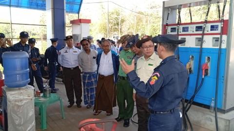ဒေးဒရဲမြို့၌ စက်သုံးဆီဆိုင်များ မီးဘေးလုံခြုံရေးစစ်ဆေးခြင်းနှင့် မီးငြှိမ်းသတ်ခြင်းလုပ်ငန်းများ ဇာတ်တိုက်လေ့ကျင့်