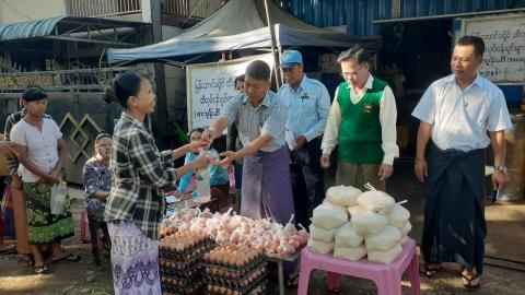 မြန်အောင်မြို့နယ် ဆီကုန်သည်နှင့်ဆီလုပ်ငန်းရှင်များအသင်းမှ ဆန်၊ ကြက်ဥနှင့်စားအုန်းဆီများကို သက်သာသောစျေးနှုန်းဖြင့်ရောင်းချပေး