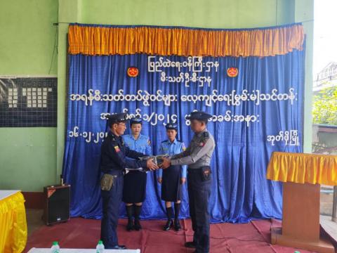 သံဖြူဇရပ်မြို့နယ်၌ အရန်မီးသတ်တပ်ဖွဲ့ဝင်များလေ့ကျင့်ရေး (မွမ်းမံ) သင်တန်း (၁/၂၀၂၄)သင်တန်းဖွင့်ပွဲကျင်းပ
