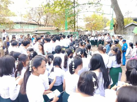 ဆိပ်ကြီးခနောင်တိုမြို့နယ်၌ တက္ကသိုလ်ဝင်တန်းစာမေးပွဲပထမနေ့ မြန်မာစာ ကျောင်းသား၊ ကျောင်းသူများ စာမေးပွဲစတင်ဖြေဆို