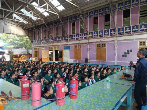 ကန့်ဘလူမြို့၌ ကိုယ်ပိုင်အထက်တန်းကျောင်းများတွင် မီးဘေးကြိုတင်ကာကွယ်ရေး အသိပညာပေး ဟောပြော