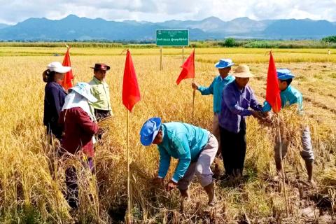 ရှမ်းပြည်နယ်(တောင်ပိုင်း) လင်းခေးခရိုင် မိုးနဲမြို့နယ် နမ့်မော်ဆွမ့်ကျေးရွာအုပ်စု၌ မြို့နယ်စိုက်ပျိုးရေးဦးစီးဌာနမှ တာဝန်ရှိသူများ၊ မြို့နယ်မြေ စာရင်းဦးစီးဌာနမှတာဝန်ရှိသူများနှင့် တောင်သူများပူးပေါင်းကာ မိုးစပါး ပန်းတိုင်ရရှိရေး ဧက ၁၀၀ စံပြစိုက်ခင်းတွင် စိုက်ပျိုးထားသော DU-12 မိုးစပါးစံကွက်ရိတ်သိမ်းခြင်းကို ယနေ့နံနက် ၈ နာရီက ဆောင်ရွက်သည်။