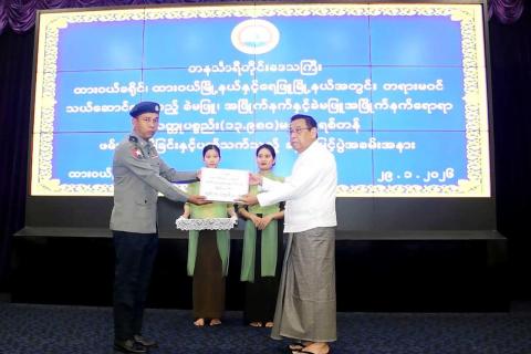 ထားဝယ်မြို့နယ်နှင့်ရေဖြူမြို့နယ်အတွင်း တရားမဝင်သယ်ဆောင်လာသည့် ခဲမဖြူ၊ အဖြိုက်နက် ၁၄ တန်ခန့် ဖမ်းဆီးရမိမှုနှင့်စပ်လျဉ်း၍ သတင်းပေးသူ၊ ဖမ်းဆီးသူများအား ဆုချီးမြှင့်