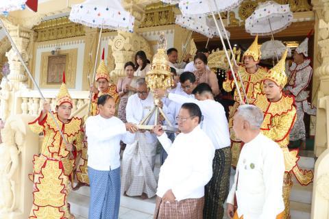 သာသာရေးနှင့်ယဉ်ကျေးမှုဝန်ကြီးဌာန၊ အနုပညာဦးစီးဌာန၊ လေ့ကျင့်ရေးနှင့်သုတေသနဌာနခွဲ၊ ၂၀၂၅- ၂၀၂၆ ပညာသင်နှစ်၊ အနုပညာအထက်တန်းကျောင်း (ရန်ကုန်)၊ သင်တန်းဆင်းအောင်လက်မှတ် ပေးအပ်ပွဲအခမ်းအနားကို ဖေဖော်ဝါရီလ ၂၅ ရက်နေ့ နံနက်ပိုင်းက ရန်ကုန်တိုင်းဒေသကြီး၊ ဒဂုံမြို့နယ်၊ မြို့မကျောင်းလမ်းရှိ အမျိုးသားဇာတ်ရုံ (ရန်ကုန်) တွင် ကျင်းပရာ ရန်ကုန်တိုင်းဒေသကြီး ဝန်ကြီးချုပ် ဦးစိုးသိန်း၊ သာသနာရေး နှင့် ယဉ်ကျေးမှုဝန်ကြီးဌာန၊ ဒုတိယဝန်ကြီး ဒေါ်နုမြဇံ၊ တိုင်းဒေသကြီး အစိုးရအဖွဲ့ဝင်များ၊ ဌာနဆိုင်ရာတာဝန်ရှိသူများ၊ ယဉ်ကျေးမှုနှင့် အနုပညာတက္ကသိုလ်(ရန်ကုန်)၊ ပါမောက္ခချုပ်နှင့် တာဝန်ရှိသူများ၊ သင်တန်းဆင်း ကျောင်းသား၊ ကျောင်းသူများ၊ ဖိတ်ကြားထားသည့် ဧည့်သည်တော်များနှင့် တာဝန်ရှိသူများ တက်ရောက်ကြသည်။