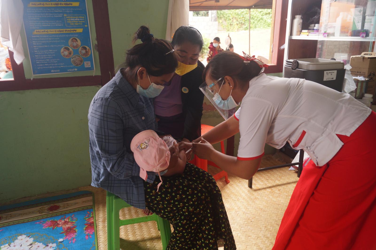 ရှမ်းပြည်နယ်တောင်ပိုင်း၊ ပအိုဝ်းကိုယ်ပိုင်အုပ်ချုပ်ခွင့်ရဒေသ၊ နောင်တရားမြို့၌ ကျေးလက် ကျန်းမာရေးဌာနမှ ငါးနှစ်အောက် ကလေးငယ်များအား ပုံမှန်ကာကွယ်ဆေးထိုးနှံခြင်း လုပ်ငန်းကို ယနေ့နံနက်ပိုင်းတွင် ဆောင်ရွက်ရှိသည်။