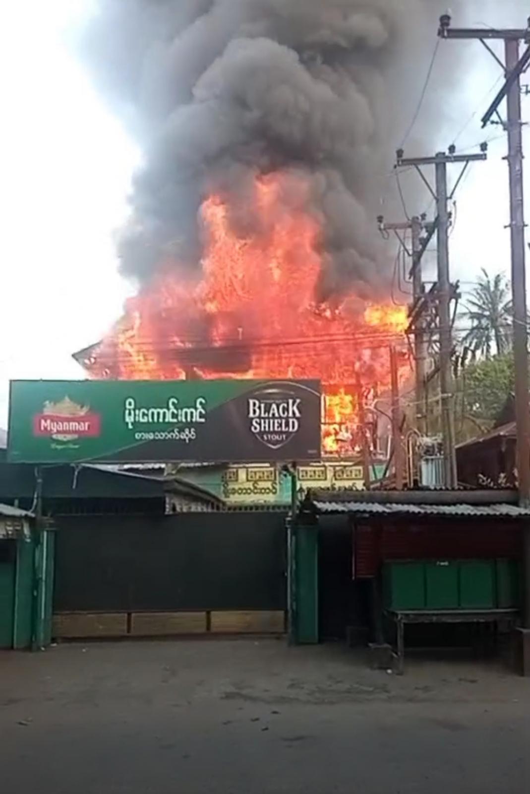 ပဲခူးတိုင်းဒေသကြီး တောင်ငူခရိုင် တောင်ငူမြို့နယ်အမှတ် ၇ ရပ်ကွက်၊ ခေမာလမ်းအတွင်း ဖွင့်လှစ်ထားသည့် မိုးကောင်းကင်အမည်ရှိ စားသောက်ဆိုင်တွင် ယနေ့နံနက် ၆ နာရီ ၂၀ မိနစ်ခန့်က လျှပ်စစ်ဝါယာလျှော့မှတစ်ဆင့် မီးလောင်မှုဖြစ်ပွားခဲ့ကြောင်း ခရိုင်မီးသတ်ဦးစီးဌာနမှ သိရသည်။