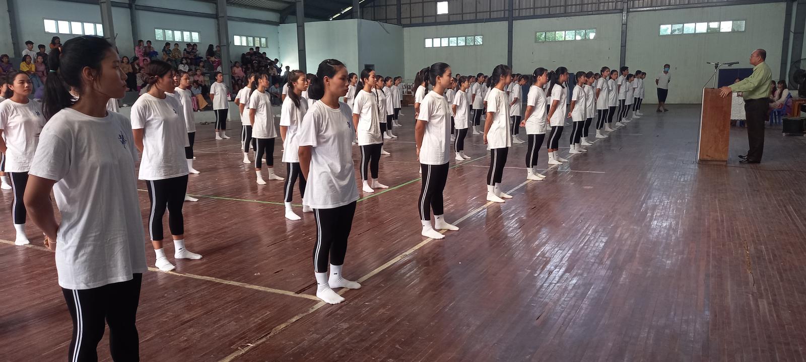 အခမ်းအနားတွင် ခရိုင်စီမံအုပ်ချုပ်ရေးအဖွဲ့ ဉက္ကဋ္ဌဦးမျိုးဦးက အဖွင့်အမှာစကား ပြောကြားရာ၊ ကျောင်းသားမောင်မယ် လူငယ်လေးများအနေဖြင့် ကျောင်းနေပျော်၍ စာတော်သောသူများဖြစ်စေလိုကြောင်း၊ ကျောင်းစာအပြင် အားကစားများကိုလည်း စိတ်ဝင်စားစွာ ကစားသွားကြစေလိုကြောင်း အားကစား လှုပ်ရှားခြင်းဖြင့် ကျန်းမာရေးအတွက် တစ်ဖက်တစ်လှမ်းမှ အထောက်အကူပြုပေးသလို ကျန်းမာရေးကောင်းမွန်မှသာ မိမိတို့ရဲ့ မျှော်မှန်းချက်/ ရည်ရွယ်ချက်များ ပြည့်စုံနိုင်မည်ဖြစ်ကြောင်း၊ အားကစားသည် ကိုယ်ကာယ၊ ရုပ်ပိုင်းဆိုင်ရာကိုသာ သန်မာစေသည်မဟုတ်ဘဲ စိတ်ပိုင်းဆိုင်ရာ ကြံ့ခိုင်မှုကိုပါ အထောက်အကူ ပြုပေးသည်ဖြစ်ကြောင်း စသည်ဖြင့် ပြောကြားခဲ့ပြီး၊ ပါမောက္ခချုပ်ဆရာမကြီးဒေါက်တာမျိုးမျိုးက လက်ထောက်ညွှန်ကြားရေးမှူး ဒေါ်နိုင်နိုင်ဝင်းအား အမှတ်တရ ဂုဏ်ပြုလက်ဆောင် ပေးအပ်ခဲ့သည်။ ဆက်လက်၍ ပါမောက္ခချုပ်ဆရာမကြီးဒေါက်တာမျိုးမျိူးက သင်တန်းဆင်းပွဲသို့ တက်ရောက်ပေးခဲ့သည့် ခရိုင်စီမံအုပ်ချုပ်ရေးအဖွဲ့ဥက္ကဋ္ဌနှင့် အဖွဲ့ဝင်များ၊ ဆရာ၊ ဆရာမနှင့် ကျောင်းသား/သူများ၊ ဝတ်စုံအင်္ကျီ၁၅၀ထောက်ပံ့ပေးပါသော ရွှေဘိုခရိုင်အားကစားနှင့် ကာပညာဦးစီးမှူးအား အထူးကျေးဇူးတင်ပါကြောင်း ပြောကြားခဲ့သည်။
