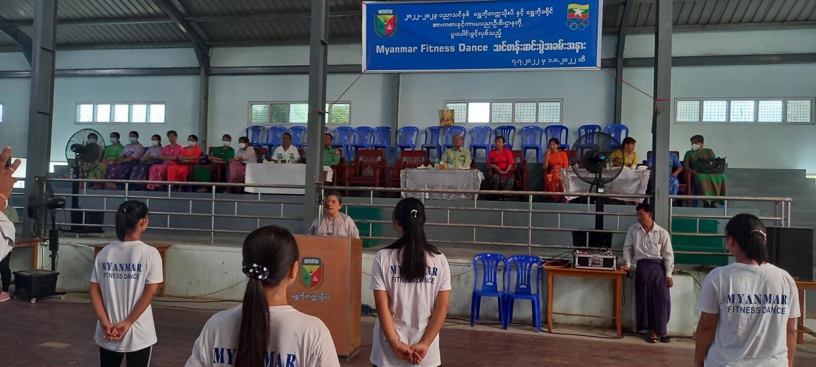 စစ်ကိုင်းတိုင်းဒေသကြီး ရွှေဘိုတက္ကသိုလ်တွင် ၂၀၂၂-၂၃ ပညာသင်နှစ် ရွှေဘိုတက္ကသိုလ်နှင့်ရွှေဘိုခရိုင်အားကစားနှင့် ကာယပညာဦးစီးဌာနတို့ ပူးပေါင်းဖွင့်လှစ်သည့် Myanmar Fitness Dance သင်တန်းဆင်းပွဲ အခမ်းအနားကို ယနေ့ နံနက်၉နာရီအချိန်က အဆိုပါ တက္ကသိုလ်ရှိ အားကစားခန်းမ၌ ကျင်းပပြုလုပ်ခဲ့ကြောင်း သိရသည်။