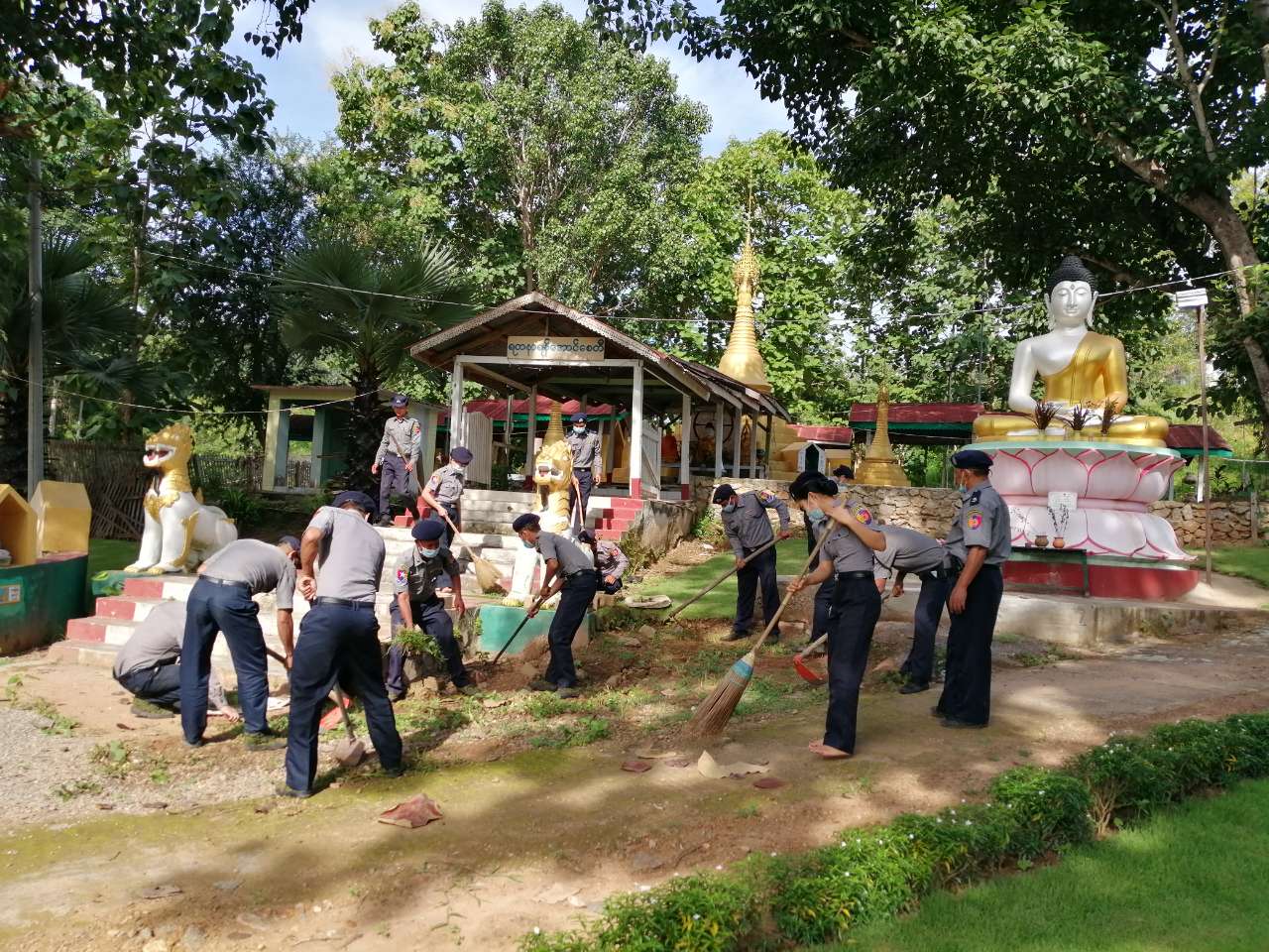 ထိုသို့ ဆောင်ရွက်ရာတွင် မြို့နယ်ရဲတပ်ဖွဲ့မှူး ရဲမှူးဘုန်းနိုင် ဦးစီး၍ ရဲတပ်ဖွဲ့ဝင် (၂၀)ဦး တို့သည် မယ်စဲ့မြို့အဝင် ရတနာရန်အောင် စေတီတော်ရင်ပြင် သန့်ရှင်းရေး ပြုလုပ်ခြင်း၊ စေတီတော် အတွင်းနှင့်အပြင်ရှိ မြက်ပင်၊ ချုံနွယ်များ ခုတ်ထွင်ရှင်းလင်းခြင်း၊ အမှိုက်သရိုက်များ ရှင်းလင်းကာ ပြည်သူအကျိုးပြု စုပေါင်း သန့်ရှင်းရေး ဆောင်ရွက်ခဲ့ကြောင်း သိရသည်။