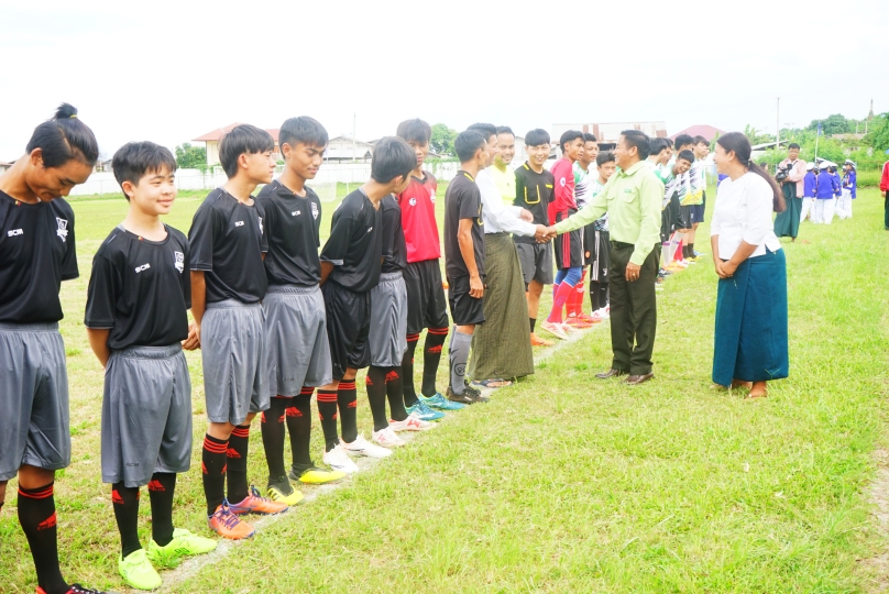 ဆက်လက်၍ ပြိုင်ပွဲဝင်အားကစားအသင်း ၉ သင်းမှ အားကစားသမားများက အားကစားသစ္စာအဓိဋ္ဌာန်ရွတ်ဆိုပြီး ကွင်းအတွင်းမှ ပြန်လည်ထွက်ခွာခဲ့ကြပြီး ဘောလုံးပြိုင်ပွဲကို မြို့နယ် အားကစားနှင့်ကာယပညာ ကော်မတီဥက္ကဋ္ဌ ဦးဝင်းမြင့်က ကွင်းအတွင်း ဘောလုံးကန်သွင်း၍ ပြိုင်ပွဲကိုစတင်ပေးခဲ့ကြောင်း သိရသည်။