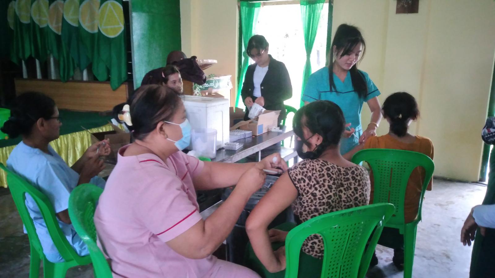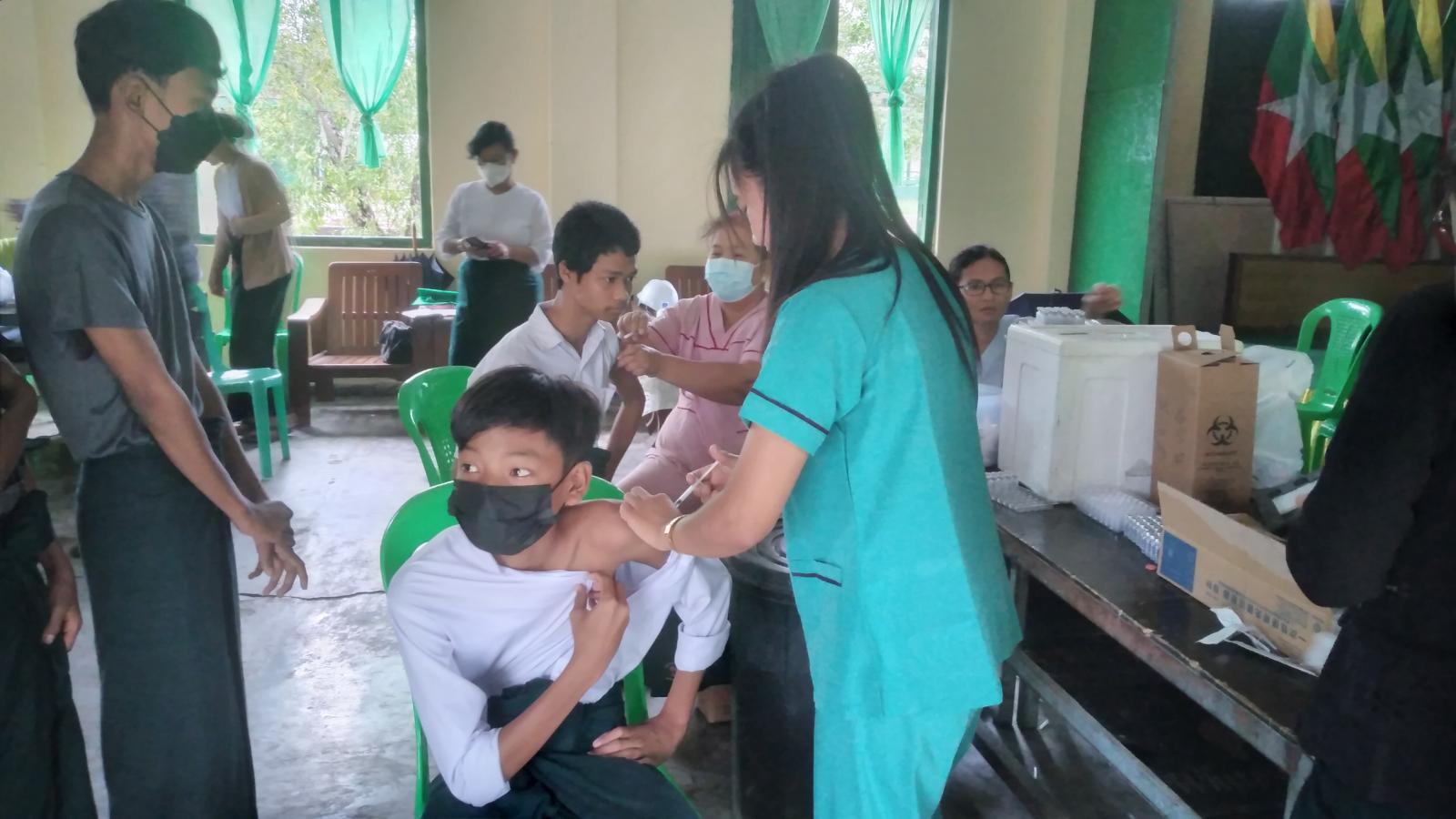 ဧရာဝတီတိုင်းဒေသကြီး၊ ဖျာပုံခရိုင်၊ မြို့နယ်စီမံအုပ်ချုပ်ရေးအဖွဲ့၏ ဦးဆောင်မှုဖြင့် မြို့နယ် ကျန်းမာရေး ဝန်ထမ်းများက ဖျာပုံမြို့ အထက-၂ ကျောင်းတွင် ပညာသင်ကြားလျက်ရှိသော အထက်တန်း၊ အလယ်တန်း အဆင့် ကျောင်းသား၊ ကျောင်းသူများ ကျန်းမာပျော်ရွှင်စွာ ပညာသင်ကြားနိုင်စေရန် ကိုဗစ်ကာကွယ်ဆေး တစ်ကြိမ်မျှ မထိုးနှံရသေးသူများနှင့် ကိုဗစ်ကာကွယ်ဆေးထိုးနှံပြီး (၆)လပြည့်ပြီးသူ ကျောင်းသား၊ ကျောင်းသူ များအား ယနေ့ နံနက်(၁၀)နာရီအချိန်က ဖျာပုံမြို့ အထက-၂ ကျောင်း ရတနာခန်းမ၌ ကိုဗစ်-၁၉ ရောဂါ ကာကွယ်ဆေးကို ထိုးနှံပေးလျက်ရှိကြောင်း သိရသည်။