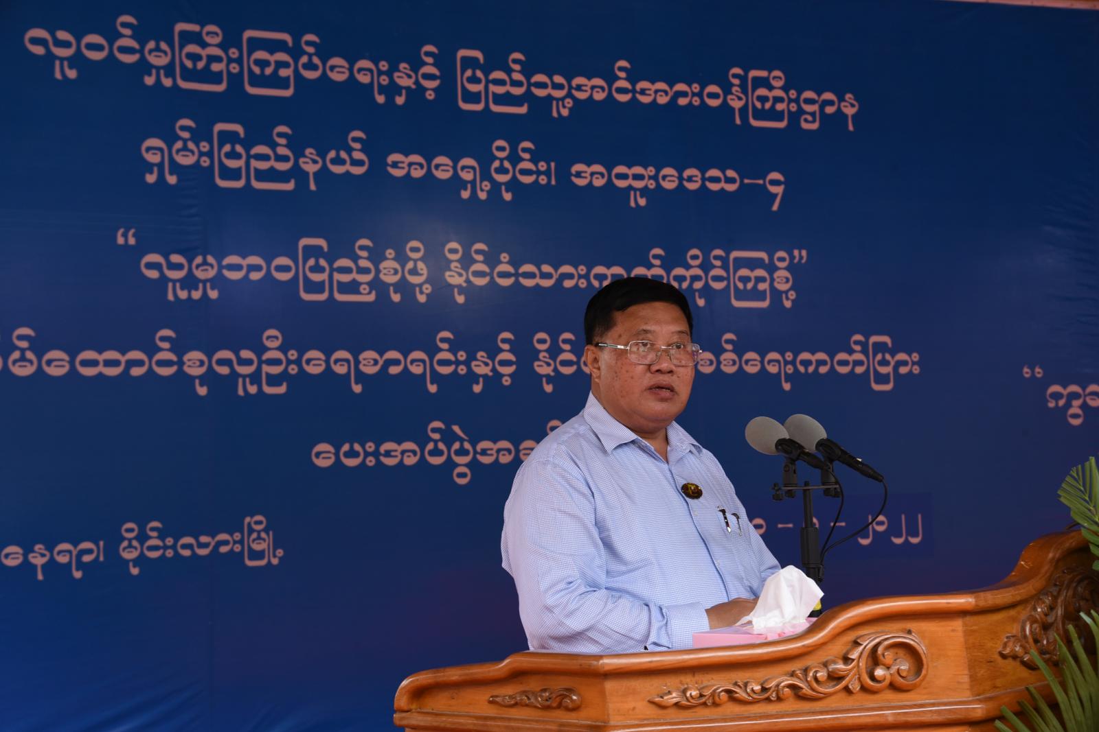 ပေးအပ်ပွဲတွင် ရှမ်းပြည်နယ် ဝန်ကြီးချုပ် ဒေါက်တာကျော်ထွန်းက ရှမ်းပြည်နယ် (အရှေ့ပိုင်း) ဒေသဖွံ့ဖြိုး ရေးလုပ်ငန်းများကို လာရောက်ကြည့်ရှုစစ်ဆေး၍ ရှမ်းပြည်နယ်(အရှေ့ပိုင်း) လူဝင်မှုကြီးကြပ်ရေးနှင့် ပြည်သူ့အင်အားဝန်ကြီးဌာနက အထူးဒေသ-၄ (မိုင်းလား) အတွင်း နေထိုင်ကြသော တိုင်းရင်းသားများနှင့် ဥပဒေအရ နိုင်ငံသားများကို ပန်းခင်းစီမံချက်ဖြင့် ပြုလုပ်ပေးထားသည့် အိမ်ထောင်စု လူဦးရေစာရင်းနှင့် နိုင်ငံသား စိစစ်ရေးကတ်ပြား ပေးအပ်ပွဲကို တက်ရောက်အားပေး ချီးမြှင့်ခြင်းဖြစ်ကြောင်း၊ ရှမ်းပြည်နယ်(အရှေ့ပိုင်း) အနေဖြင့် ပန်းခင်းစီမံချက်ဖြင့် ၂၀၂၁ခုနှစ်မေလ(၃)ရက်မှ ၂၀၂၂ခုနှစ် သြဂုတ်လ (၁၈)ရက်နေ့အထိ ဆောင်ရွက်ရန် (၅၄၀၆၃)ဦးရှိသည့် အနက် (၆၃၃၂၆)ဦးဆောင်ရွက်ပေးပြီးဖြစ်သည့် အတွက် (၁၁၇.၁၃)ရာခိုင်နှုန်း ဆောင်ရွက်ပေးနိုင်ခဲ့ပြီး ဖြစ်ရာ မြို့နယ်(၁၁)မြို့နယ်ရှိသည့် အနက် (၉)မြို့နယ်မှာ ရာနှုန်းပြည့်ဆောင်ရွက်နိုင်ခဲ့ပြီး မိုင်းယန်းမြို့နယ်နှင့် မက်မန်းမြို့နယ်များမှာ ရာနှုန်းပြည့် ဆောင်ရွက်နိုင်ခြင်းမရှိကြောင်း သိရှိရပြီး ရာနှုန်းမပြည့်မီရသည့် အကြောင်းမှာ UWSA `ဝ´အဖွဲ့အတွင်း နိုင်ငံသားလုပ်ငန်းများ ကွင်းဆင်းဆောင်ရွက်နိုင်ခြင်း မရှိသေးသည်ကို သိရပါကြောင်း၊ အထူးဒေသ-၄ (မိုင်းလား)တွင် ပန်းခင်းစီမံချက်ဖြင့် နိုင်ငံသား စိစစ်ရေးကတ်ပြား ဆောင်ရွက်ပြီးစီးမှုကို တြိဂံဒေသတိုင်း စစ်ဌာနချုပ် တိုင်းမှူးက ၂၀၂၂ဇူလိုင်လ(၇)ရက်နေ့မှာ (ပထမ)အကြိမ်အဖြစ် တိုင်းရင်းသား(၈၃၁၆)ဦး၊ ကိုးကန့်လူမျိုး(၁)ဦး၊ စုစုပေါင်း(၈၃၁၇)ဦး ပေးအပ်ခဲ့ပြီး ယခုပေးအပ်မှာကတော့ တိုင်းရင်းသား(၂၀၂၂၈)ဦး၊ ကိုးကန့်လူမျိုး(၆၅၆)ဦး၊ စုစုပေါင်း(၂၀၈၈၄)ဦး ဖြစ်သောကြောင့် နိုင်ငံသားစိစစ်ရေး ကတ်ပြား စုစုပေါင်း (၂၉၂၀၁)ဦးကို ဆောင်ရွက်ပေးနိုင်ခဲ့ပြီး နိုင်ငံတော်စီမံ ချက်ဖြစ်သည့် ပန်းခင်းစီမံချက်ကို အောင်မြင်ပူးပေါင်း ကူညီပေးကြသည့် တြိဂံဒေသ တိုင်းစစ်ဌာနချုပ် တိုင်းမှူး၊ ပြည်နယ်အစိုးရအုပ်ချုပ်ရေးအဖွဲ့ခွဲ (ရှမ်းအရှေ့) ဥက္ကဋ္ဌနှင့် ဆက်စပ်ဌာနဆိုင်ရာများ၊ အထူးဒေသ-၄(မိုင်းလား)ဥက္ကဋ္ဌကြီးနှင့် ဗဟိုကော်မတီဝင်များ တာဝန် သူများနှင့် ဝိုင်းဝန်းကူညီ ဆောင်ရွက်ပေးကြသည့် Volunteerများ၊ဒေသခံတိုင်းရင်းသားများအားလုံးကို ကျေးဇူးတင်ရှိပါကြောင်း ပြောကြားသည်။