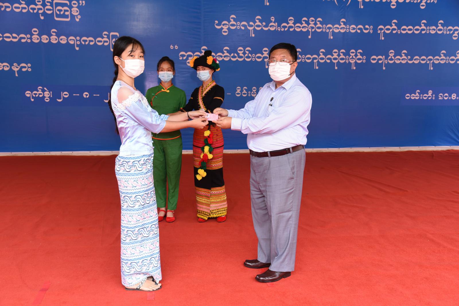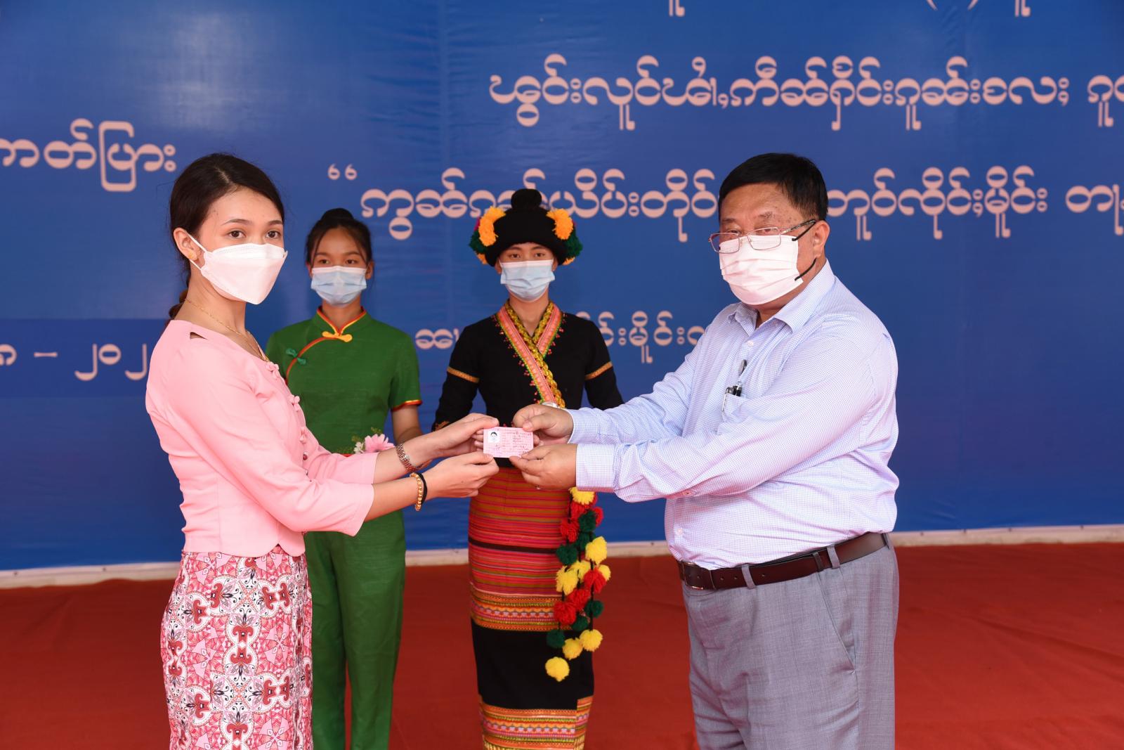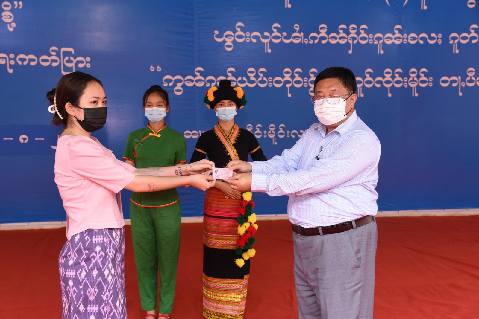 ဆက်လက်၍ နိုင်ငံသားစိစစ်ရေးကတ်ပြားများ ပေးအပ်ရာ ရှမ်းပြည်နယ်ဝန်ကြီးချုပ် ဒေါက်တာကျာ်ထွန်း၊ တြိဂံဒေသတိုင်း စစ်ဌာနချုပ်တိုင်းမှူး ဗိုလ်ချုပ် မျိုးမင်းထွန်း၊ အထူးဒေသ(၄) ငြိမ်းချမ်းရေးနှင့် စည်းလုံးရေး ကော်မတီ ဒုတိယဥက္ကဋ္ဌဦးစန်ပေ့၊ အထူးဒေသ(၄) ငြိမ်းချမ်းရေးနှင့် စည်းလုံးရေးကော်မတီ အမြဲတမ်း ကော်မတီဝင်၊ စစ်ရေးကော်မတီ ဒုတိယဥက္ကဋ္ဌ ဦးလော်ချန်ပေါက်၊ အထူးဒေသ(၄)ငြိမ်းချမ်းရေးနှင့် စည်းလုံးရေး ကော်မတီ အတွင်းရေးမှူး-၂ ဦးအားလူ၊ ပြည်နယ်ယံဇာတရေးရာဝန်ကြီး ဦးစိုင်းလိတ်၊ ပြည်နယ်လူမှုရေးရာဝန်ကြီး ဦးအောင်မြင့်၊ ပြည်နယ်အစိုးရအဖွဲ့ အတွင်းရေးမှူး ဦးစိုင်းသော်ဝင်းတို့မှ ဆီလူးဒေသ၊ နမ့်ပန်းဒေသအတွင်း ဆောင်ရွက်ပေးခဲ့သည့် နိုင်ငံသား စိစစ်ရေးကတ်ပြားများ ပေးအပ်ခဲ့ကြပြီး အထူးဒေသ(၄)မိုင်းလားသို့ ပန်းခင်းစီမံချက်ဖြင့် ဆောင်ရွက်ပေးမှု အခြေအနေအား ဒုတိယပြည်နယ်ဦးစီးမှူး ဦးထိန်လင်းမှ ရှင်းလင်းတင်ပြ၍ အထူးဒေသ(၄)ငြိမ်းချမ်းရေးနှင့်စည်း လုံးရေးကော်မတီ ဒုတိယဥက္ကဋ္ဌ ဦးစန်ပေ့မှ ကျေးဇူးတင်စကား ပြန်လည်ပြောကြားကြောင်း သိရသည်။