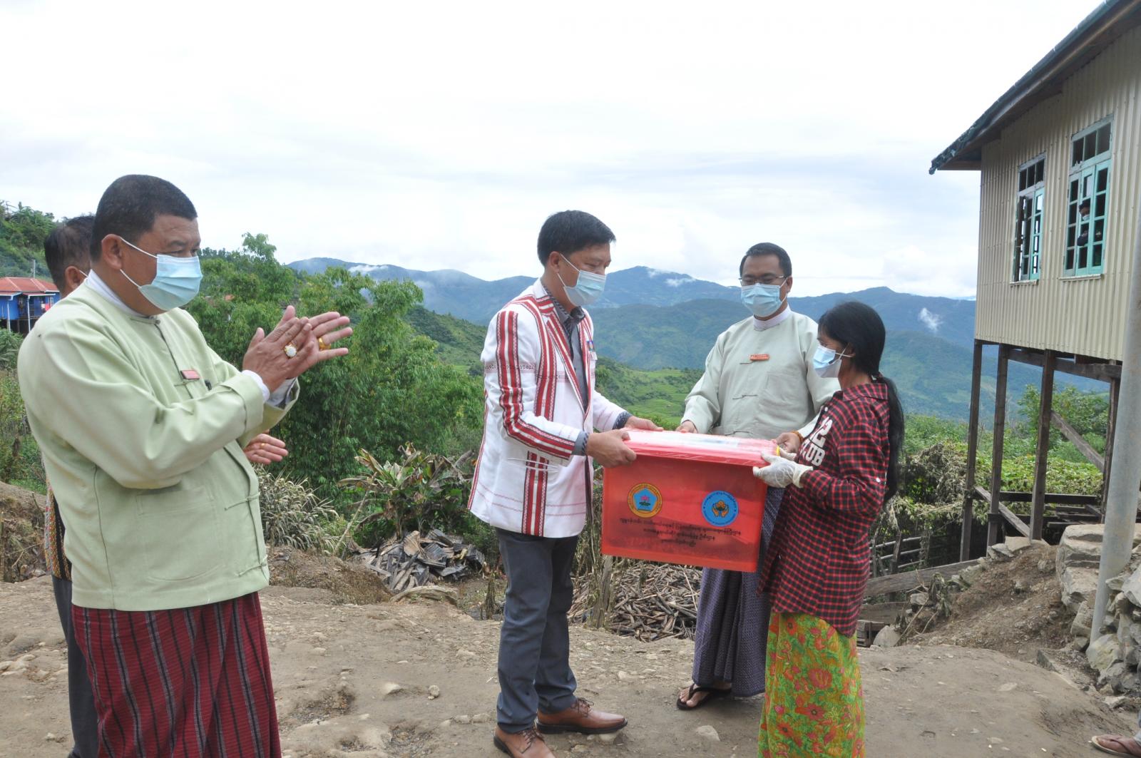 အဆိုပါ ထောက်ပံ့ငွေပေးအပ်ခြင်းတွင် ချင်းပြည်နယ်အစိုးရအဖွဲ့ရုံးမှ အိမ်ငှား ဦးဟွပ်သူး သေဆုံးသူ၏ ကျန်ရစ်သူမိသားစုဝင်များ အတွက် ထောက်ပံ့ငွေကျပ်(၃)သိန်း၊ အိမ်ရှင် ဦးလျန်ဟရမ်အား ထောက်ပံ့ငွေကျပ်(၃)သိန်း ၊ ပြည်နယ်ဘေးအန္တရာယ်ဆိုင်ရာစီမံခန့်ခွဲမှုဦးစီးဌာနမှ ကျန်ရစ်သူ မိသားစုဝင်များအတွက်ထောက်ပံ့ ငွေကျပ် (၃)သိန်း၊ နေအိမ်မီးလောင်ဆုံးရှုံးသည့်အိမ်ရှင်အား ထောက်ပံ့ ငွေကျပ် (၂)သိန်းနှင့် ကယ်ဆယ်ရေးပစ္စည်း (၁၆)မျိုးကို တာဝန်ရှိသူများကပေးအပ်ခဲ့ကြောင်း သိရသည်။