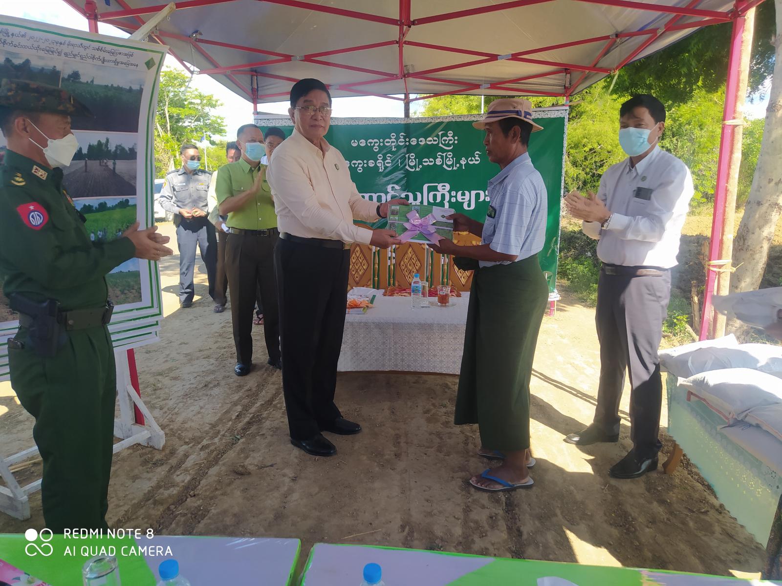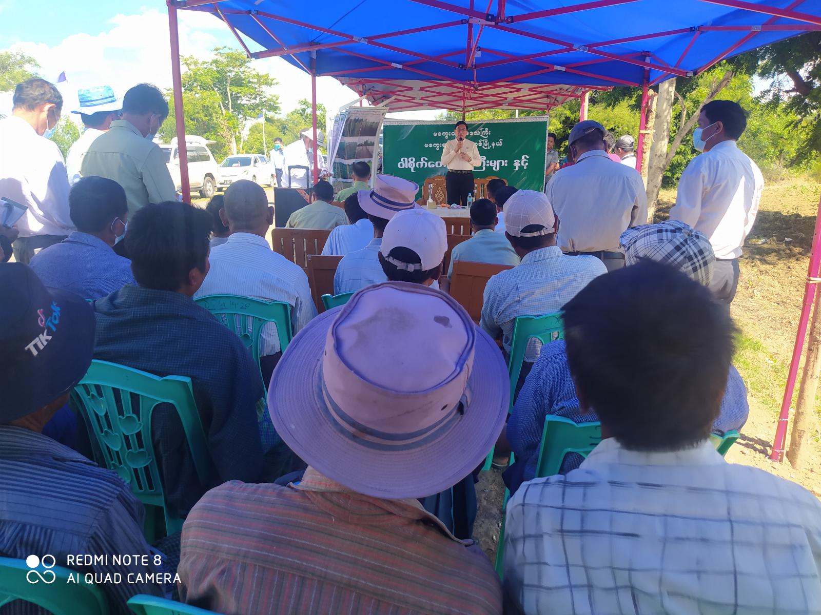 အခမ်းအနားတွင်မြို့သစ်မြို့နယ်စိုက်ပျိုးရေးဦးစီးဌာန၊ မြို့နယ်ဦးစီးမှူးကစိုက်ပျိုးရေးဆိုင်ရာ အချက်အလက်များနှင့် မိုးသီးနှံစိုက်ပျိုးထုတ်လုပ်မှု အခြေအနေများအား မြေပုံကားချပ်များဖြင့် ရှင်းလင်းတင်ပြခဲ့သည်။ ထို့နောက်တိုင်းဒေသကြီး ဝန်ကြီးချုပ်ကမြန်မာ နိုင်ငံအနေဖြင့် စိုက်ပျိုးရေးကို အခြေခံ၍ စျေးကွက်စီးပွားရေးစနစ်ကို ဖော်ဆောင်နေသည့် နိုင်ငံတစ်နိုင်ငံဖြစ်ကြောင်း၊ နိုင်ငံ၏လူဦးရေအများစုမှာ ကျေးလက်နေပြည်သူများဖြစ်ပြီး စိုက်ပျိုးရေးကို အဓိကထားလုပ်ကိုင် ဆောင်ရွက်ကြရာ လူမှုစီးပွားဘ၀ဖွံ့ဖြိုးတိုးတက်ရန် လိုအပ်သလိုကျေးလက်နေပြည်သူများ၏ ဘ၀ဖွံ့ဖြိုးတိုးတက်ရေးမှာ စိုက်ပျိုးထုတ်လုပ်မှုကဏ္ဍ အောင်မြင်ဖြစ်ထွန်းရန် အဓိကလိုအပ်ကြောင်း၊ စိုက်ပျိုးရေးအောင်မြင်ဖြစ်ထွန်းရန်အတွက် စိုက်ကွက်မြေပြုပြင်ခြင်းများ ဆောင်ရွက်ရန်လိုအပ်ကြောင်း ပြောကြားခဲ့သည်။