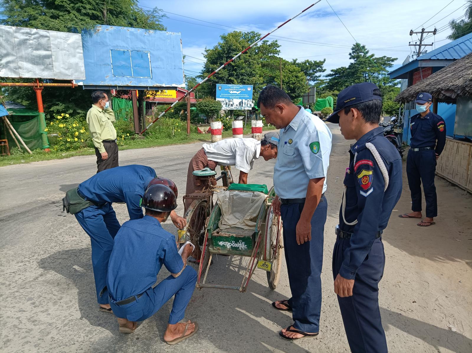 ဧရာဝတီတိုင်းဒေသကြီး၊ ကျုံပျော်ခရိုင်၊ ကျောင်းကုန်းမြို့နယ် စည်ပင်သာယာရေးနယ်နိမိတ်အတွင်း ပြေးဆွဲ လျက်ရှိသော အနှေးယာဉ်များတွင် ရှေ့နှင့်နောက် ရောင်ပြန်ပြားများ တပ်ဆင်ထားရှိရန် အသိပညာပေး ဆောင်ရွက်ခြင်းကို ယမန်နေ့ နံနက် ၉ နာရီအချိန်ခန့်က မြို့ထိပ်စစ်ဆေးရေးဂိတ်၌ ဆောင်ရွက်လျက်ရှိသည်။