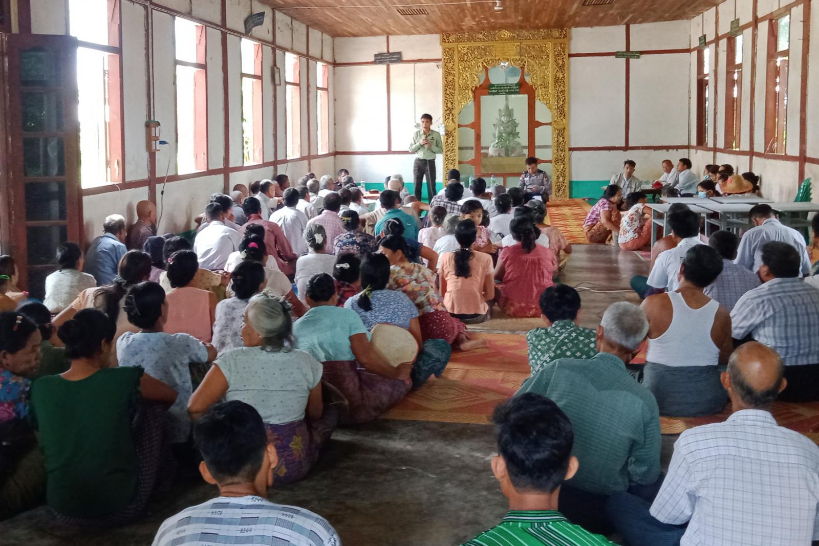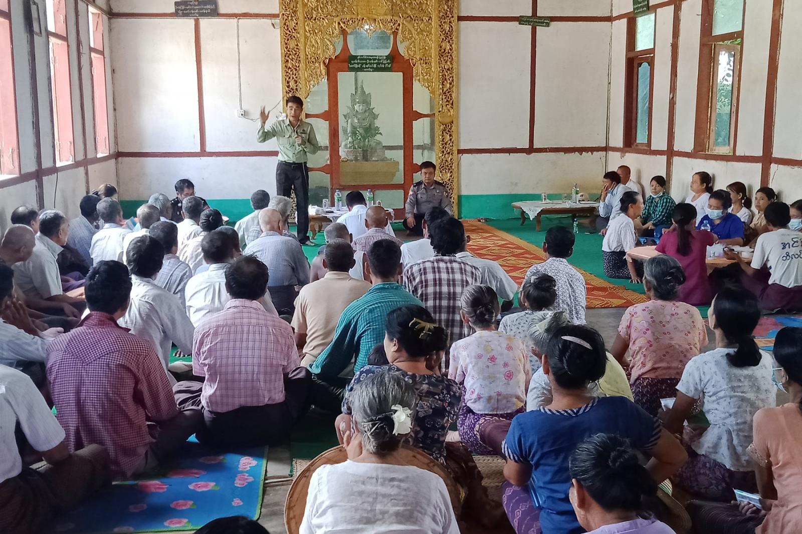ထိုသို့ကွင်းဆင်း တွေ့ဆုံရာတွင် မြို့နယ်စီမံအုပ်ချုပ်ရေးအဖွဲ့ဥက္ကဋ္ဌ ဦးအုန်းဌေးက ကျေးလက်နေပြည်သူများအတွက် ရပ်ရွာအေးချမ်းသာယာရေး၊ တရားဥပဒေစိုးမိုးရေး၊ လုံခြုံရေး၊ ပညာရေး၊ စီးပွားရေး၊ လူမှုရေး၊ ကိုဗစ်-၁၉ရောဂါ ကာကွယ်ဆေးများ အကြိမ်ပြည့်ထိုးနှံနိုင်ရေး၊ ဆောင်းသီးနှံနေကြာစိုက်ပျိုးနိုင်ရေး၊ မွေးမြူရေး၊ ကျေးရွာချင်းဆက်လမ်းများ၊ ကုန်ထုတ်လမ်းများနှင့်ကျေးရွာတွင်း လမ်းများကောင်းမွန်စေရေးနှင့်ပတ်သက်၍ ရှင်းလင်းပြောကြားခဲ့သည်။ ဆက်လက်၍ ဌာနဆိုင်ရာအကြီးအကဲများက သက်ဆိုင်ရာကဏ္ဍအလိုက် ရှင်းလင်းဆွေးခဲ့ရာ တက်ရောက်လာသည့် ပြည်သူများ၏ မေးမြန်းတင်ပြချက်များအပေါ် မြို့နယ်စီမံအုပ်ချုပ်ရေးအဖွဲ့ဥက္ကဋ္ဌနှင့် အဖွဲ့ဝင်များက ပေါင်းစပ်ညှိနှိုင်းဆောင်ရွက်ပေးခဲ့သည်။