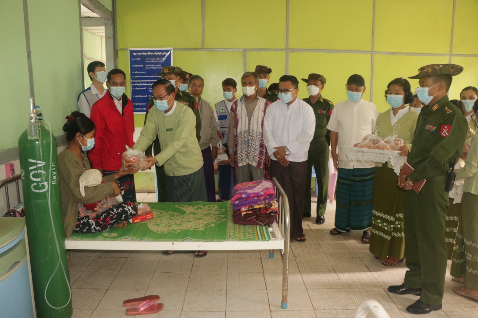 ထို့နောက် တပ်နယ်မှူးဗိုလ်မှူးချုပ် ခင်မောင်စိုးနှင့် ဇနီးက သံတောင်ကြီးမြို့ ပြည်သူ့ဆေးရုံတွင် ဆေးကုသမှုခံယူသည့် လူနာများအား အလှူငွေနှင့်ကြက်ဥ၊ ဘီစကစ်မုန့်များ ထောက်ပံ့ပေးအပ်ပြီး အားပေးစကားများ ပြောကြားခဲ့ကြောင်း သိရသည်။