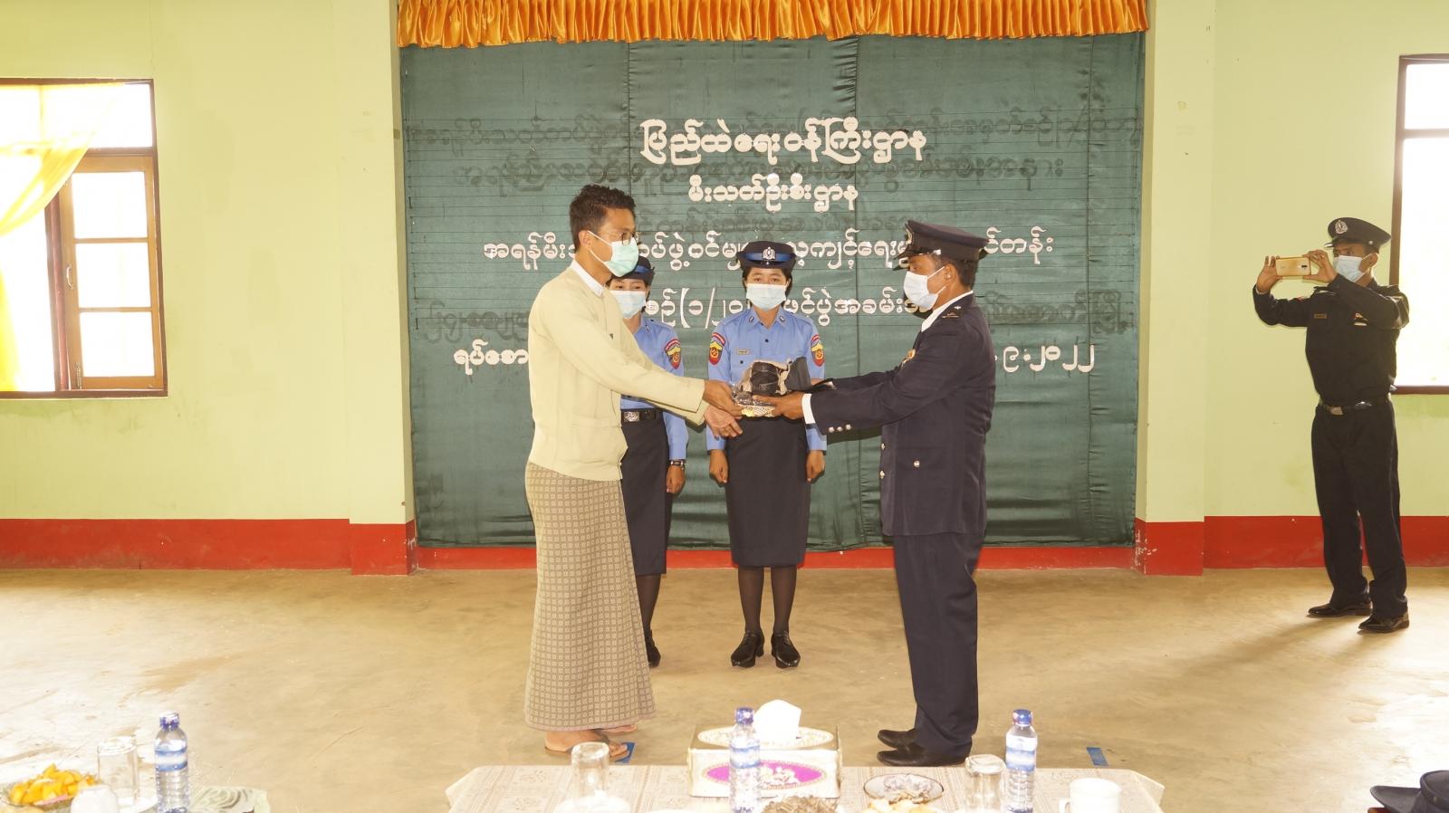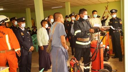 ထို့နောက် မြို့နယ်မီးဘေးလုံခြုံရေးအဖွဲ့ဥက္ကဋ္ဌမှ အရန်မီးသတ်တပ်ဖွဲ့ဝင်များအတွက် တူညီဝတ်စုံများပေးအပ်ခဲ့ရာ အရန်မီးသတ်တပ်ဖွဲ့ဝင်များကိုယ်စား အရန်မီးသတ်ဒုတိယ တပ်ရင်းမှူး ဦးအောင်သီဟမှ လက်ခံရယူခဲ့ပြီး မြို့နယ်မီးဘေးလုံခြုံရေးအဖွဲ့ဥက္ကဋ္ဌနှင့် အခမ်းအနားသို့ တက်ရောက်လာသူများက မြို့နယ်မီးသတ်ဦးစီးဌာနမှ ခင်းကျင်းပြသ ထားသည့် မီးငြှိမ်းသတ်ရေးနှင့် ရှာဖွေကယ်ဆယ်ရေးပစ္စည်းများအား လှည့်လည်ကြည့်ရှုခဲ့ကြသည်။